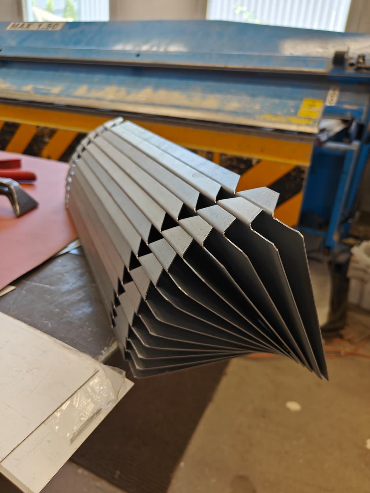 Kuvassa s-mutka, jota saumataan yhteen neljästä eri palasesta. Materiaalina 0.6mm sinkitty peltisepänlaadun teräspelti.